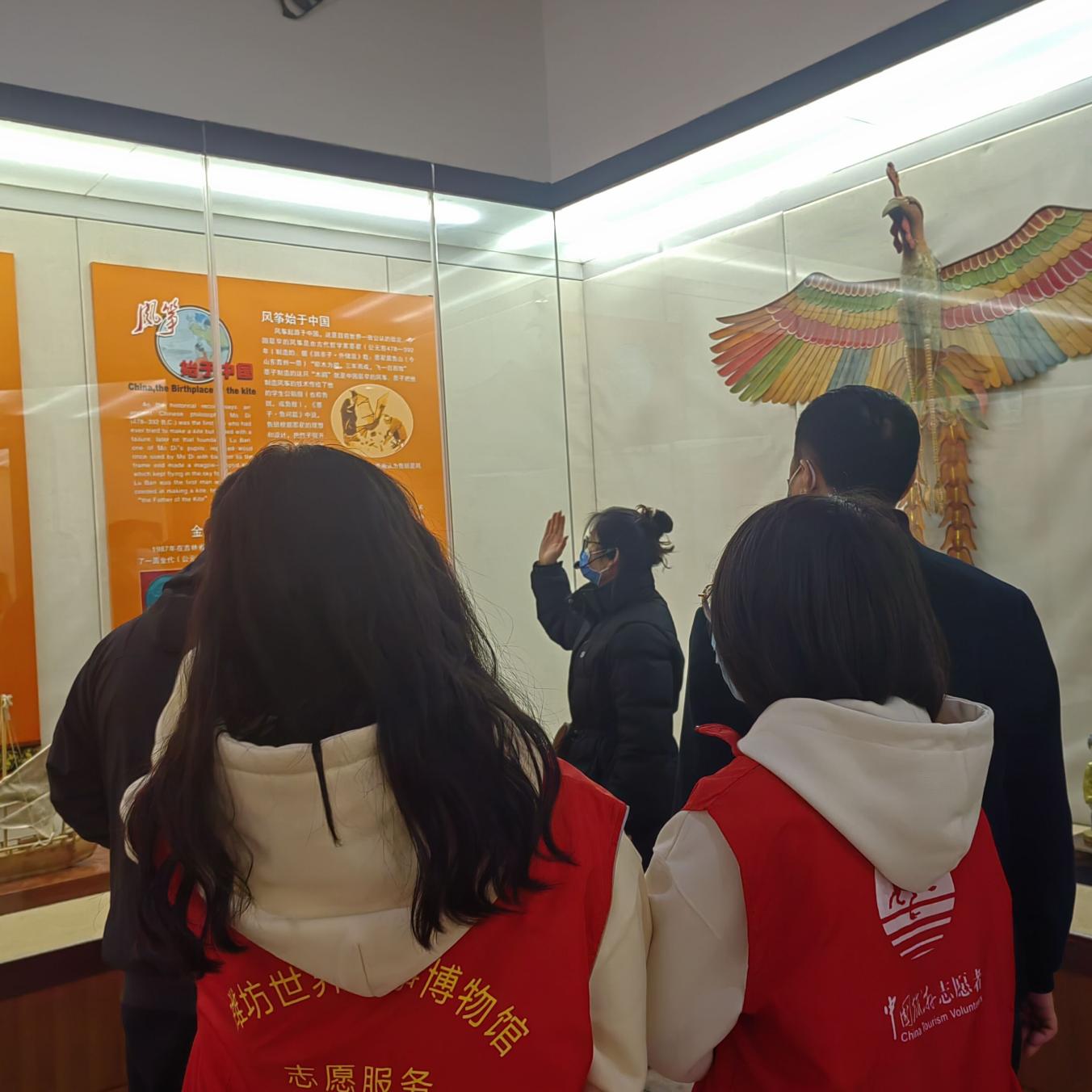 同学们利用每个周末时间,以志愿服务的形式到潍坊世界风筝博物馆开展活动,协助工作人员维持场馆秩序,参与社会教育活动,向游客发放调查问卷,并做好回收和数据统计工作。在服务过程中,同学们耐心解答游客们提出的问题,并做好馆内线路引导和讲解工作,为游客们带来沉浸式的游览体验。他们用爱心、耐心和细心践行着奉献、友爱、互助、进步的志愿服务精神,展现了潍医学子无私奉献、积极向上的良好风貌。