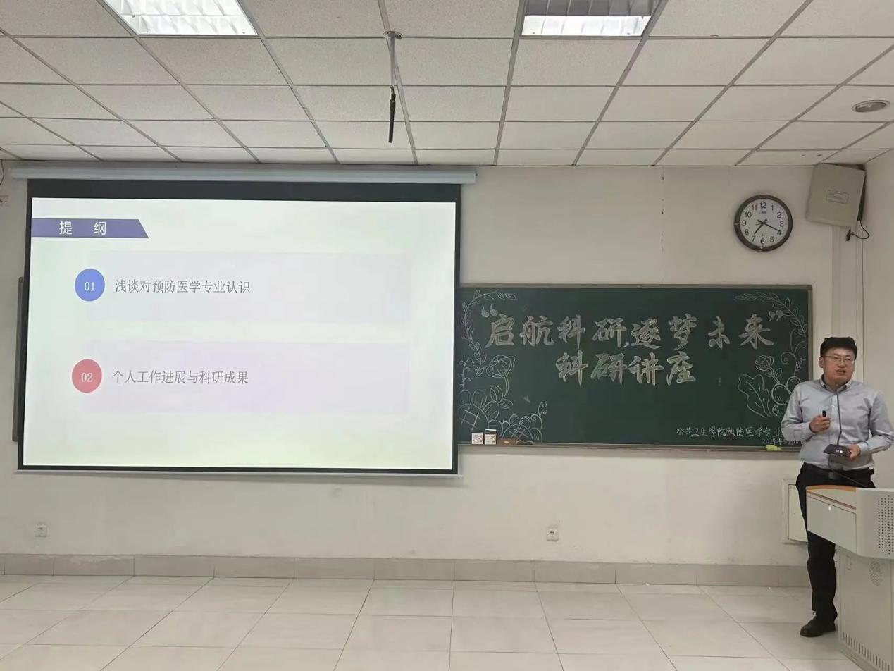 5月16日晚,预防医学党支部支部骨干教师为威廉希尔官网本科生举办“启航科研,逐梦未来”科研讲座,支部书记王春平副院长、支部预备党员王团伟博士作为主讲嘉宾。
