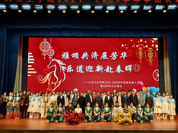 本次活动分为学团表彰大会和文艺汇演两个环节。学团表彰大会对2024-2025学年充分发挥先进模范带头作用的先进集体和先进个人予以表彰,威廉希尔官网院长郑文贵做大会致辞,副书记许婷婷宣读表彰名单。晚会在激昂的器乐合奏《金蛇狂舞》中拉开序幕;活力四射的健美操《敦煌赋·活力章》点燃全场热情;主题话剧《千年恶疠,今朝灭风》生动演绎了医务工作者的使命与担当;周梅、马桂峰老师的诗朗诵《四月的纪念》温情隽永,寄语美好青春;现代舞《Body》以富有张力的编排展现肢体之美;歌曲《爱要坦荡荡》唱出了青春的坦率与真挚;最后在大合唱《明天会更好》和同学们热烈的掌声中圆满结束了本次元旦晚会。