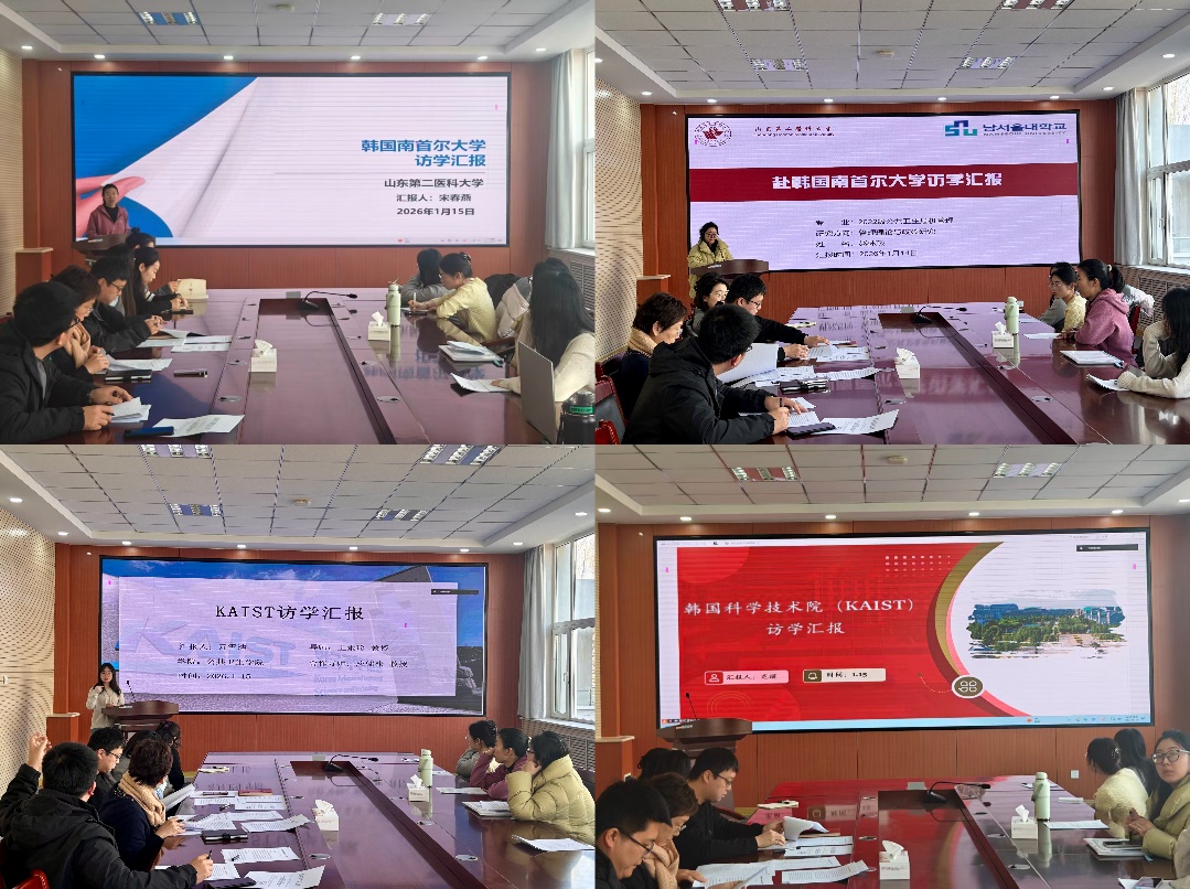 2022级公共卫生危机管理博士研究生宋春燕、赵林燕分享在韩国南首尔大学的访学经历。宋春燕围绕健康服务体系与危机管理领域国际科研课题,汇报学术交流成果及中外经验融合实践。赵林燕详细介绍访学申请时间线、学习科研经历与在韩生活情况,并浅析两国在饮食文化、人才培养、医疗及公共卫生体系建设等方面的异同之处。