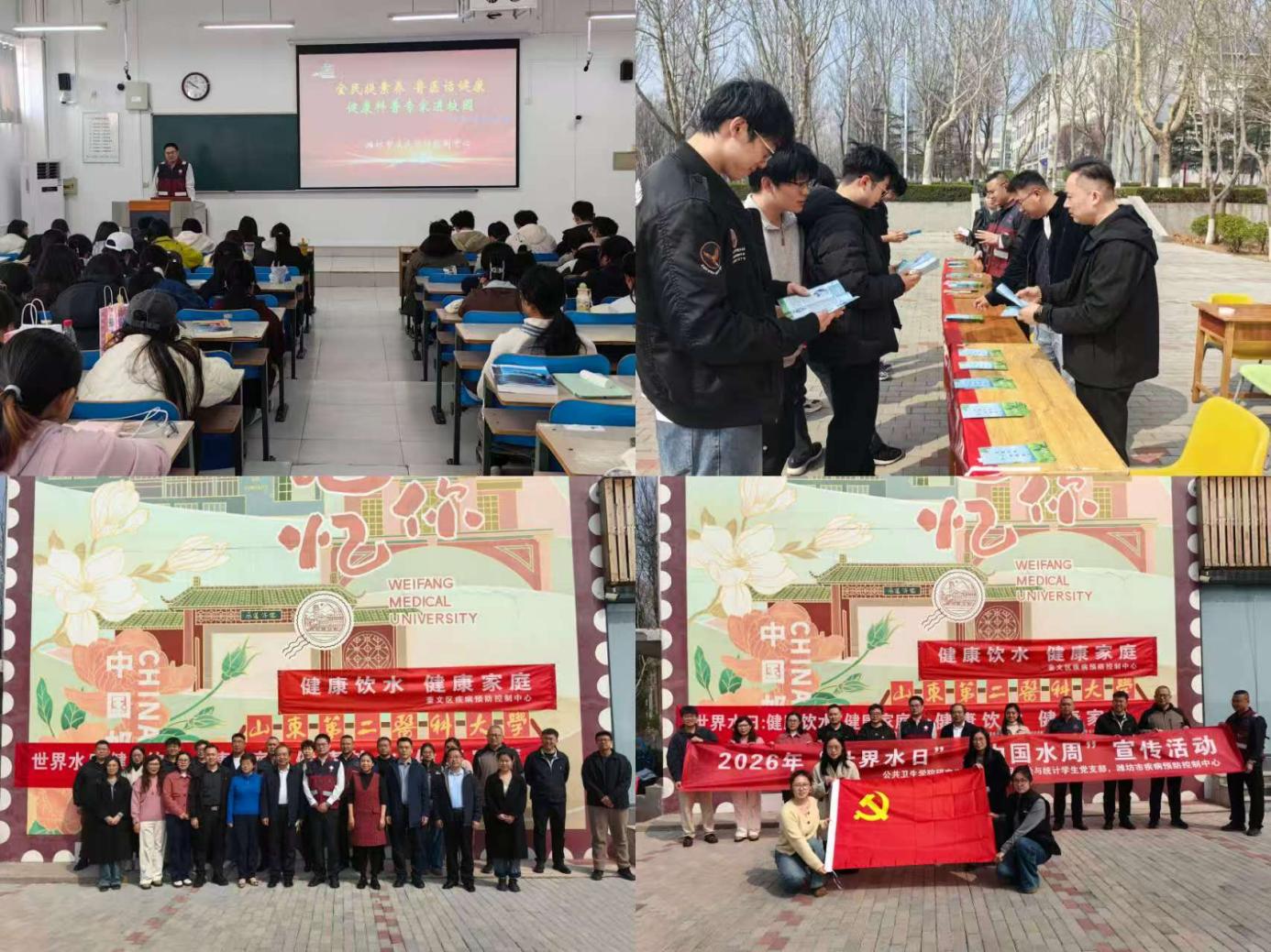 为进一步加强公众饮用水安全意识,提高公众饮用水健康素养水平,3月23日上午,威廉希尔官网联合潍坊市疾控中心举办主题为“健康饮水,健康家庭”的“世界水日”宣传活动。威廉希尔官网党委书记郑文贵、院长王春平、卫生检验与检疫专业负责人李万伟和学工办辅导员出席活动。